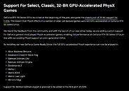 Earlier, the removal of 32-bit support was quietly acknowledged as NVIDIA’s latest GeForce RTX 50 series GPUs transition away from 32-bit CUDA software, gradually shifting the gaming industry entirely to 64-bit software. While older NVIDIA GPUs from the Maxwell to Ada generations will continue to support 32-bit CUDA, NVIDIA’s earlier update disrupted backward compatibility for physics acceleration in legacy PC games on new GPUs. Users playing these titles on RTX 50 series cards had to rely on CPU-based PhysX processing, which could result in less optimal performance compared to previous GPU generations. Thankfully, performance is now back in check as 32-bit exceptions start rolling in.